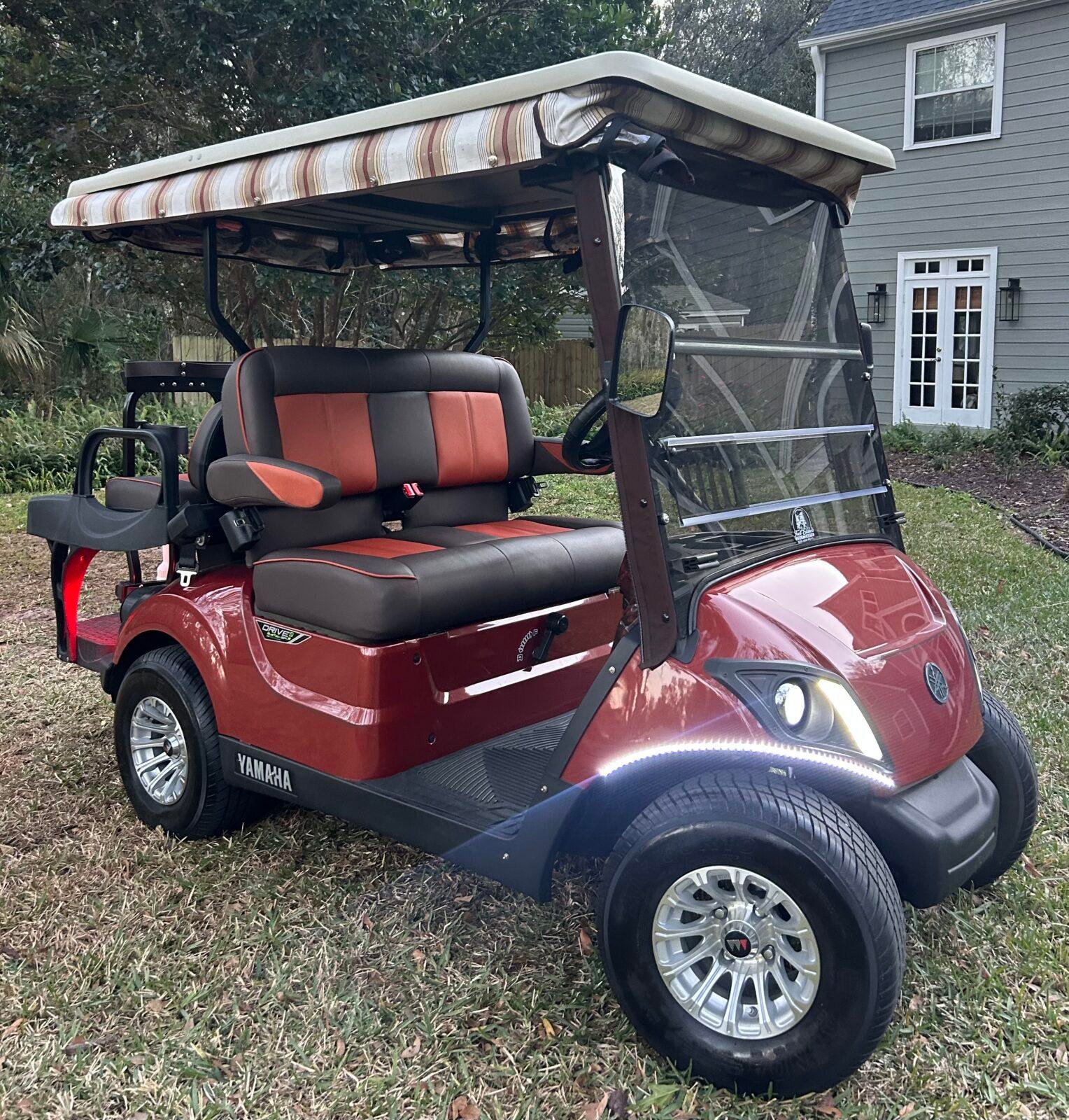 We have here the #1 most desired Golf Cart in The Villages! It is a GARAGE KEPT, custom orange 🍊 2020 YAMAHA GAS QuieTech⛽️ 4 PASSENGER golf cart in EXCELLENT CONDITION! It looks and drives LIKE NEW; it’s ready to go!
