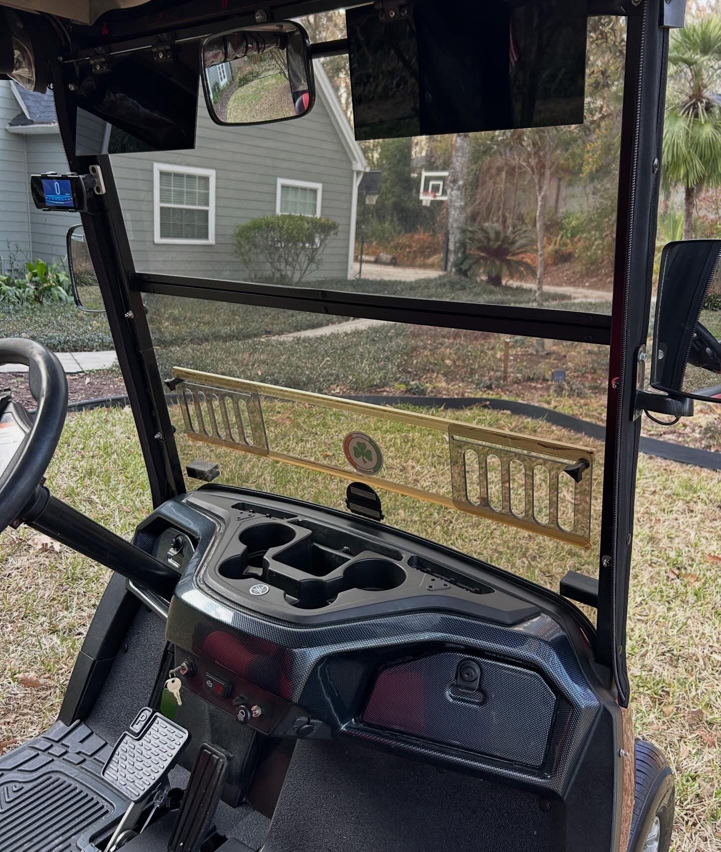 This cart has a full LED light kit (LED headlights, LED tail lights, brake lights, horn) with SELF-CANCELLING turn signals all in working order. Also has the LED safety strips up front and turn signal indicators in the mirrors. Equipped with UPGRADED seating with arm rests, custom locking dashboard, speedometer, 12V outlet to charge phone and sun visors. It has EZ snap enclosure, rear 3rd brake light, gas gauge, wheels and tires in great condition, cooler, sand bottle, floor mat and more! Just a gorgeous golf cart with BIG SAVINGS!
