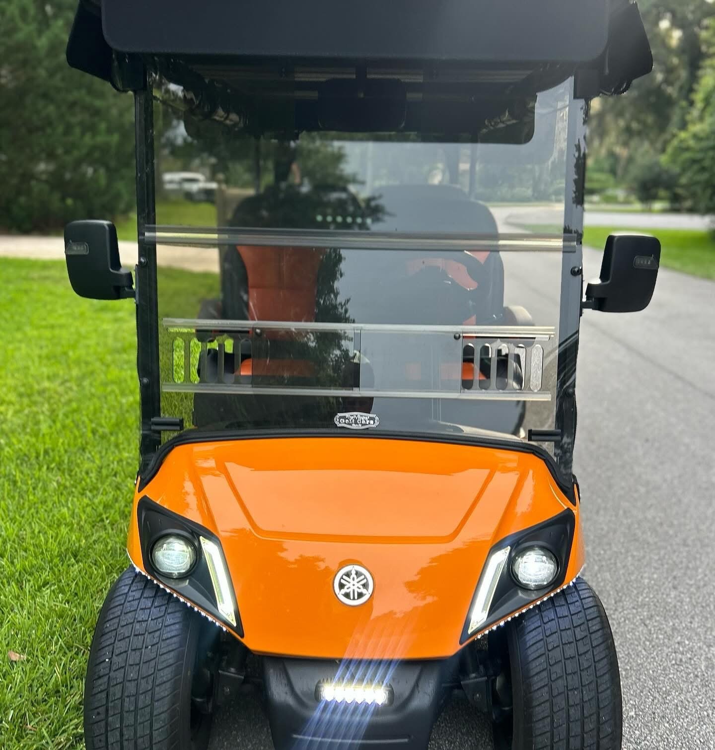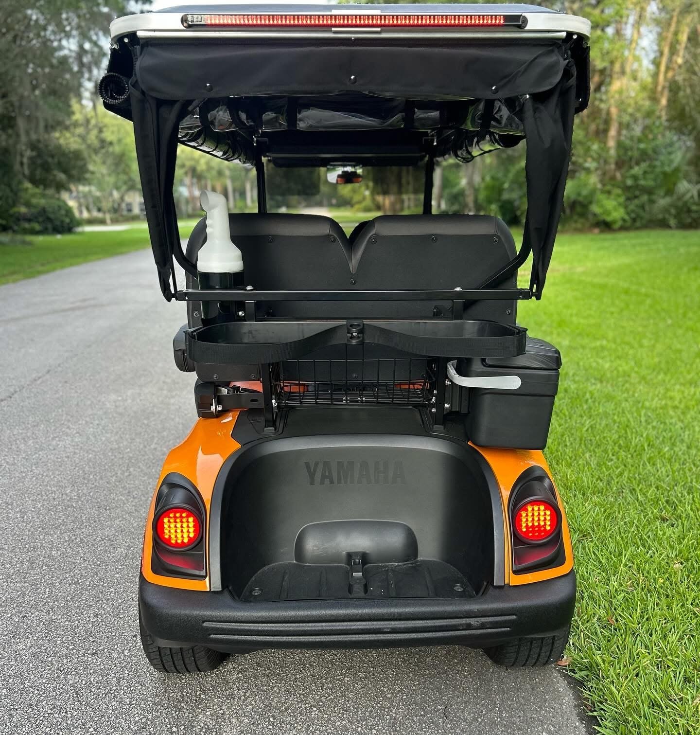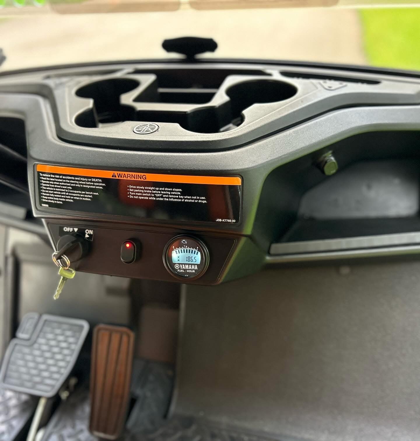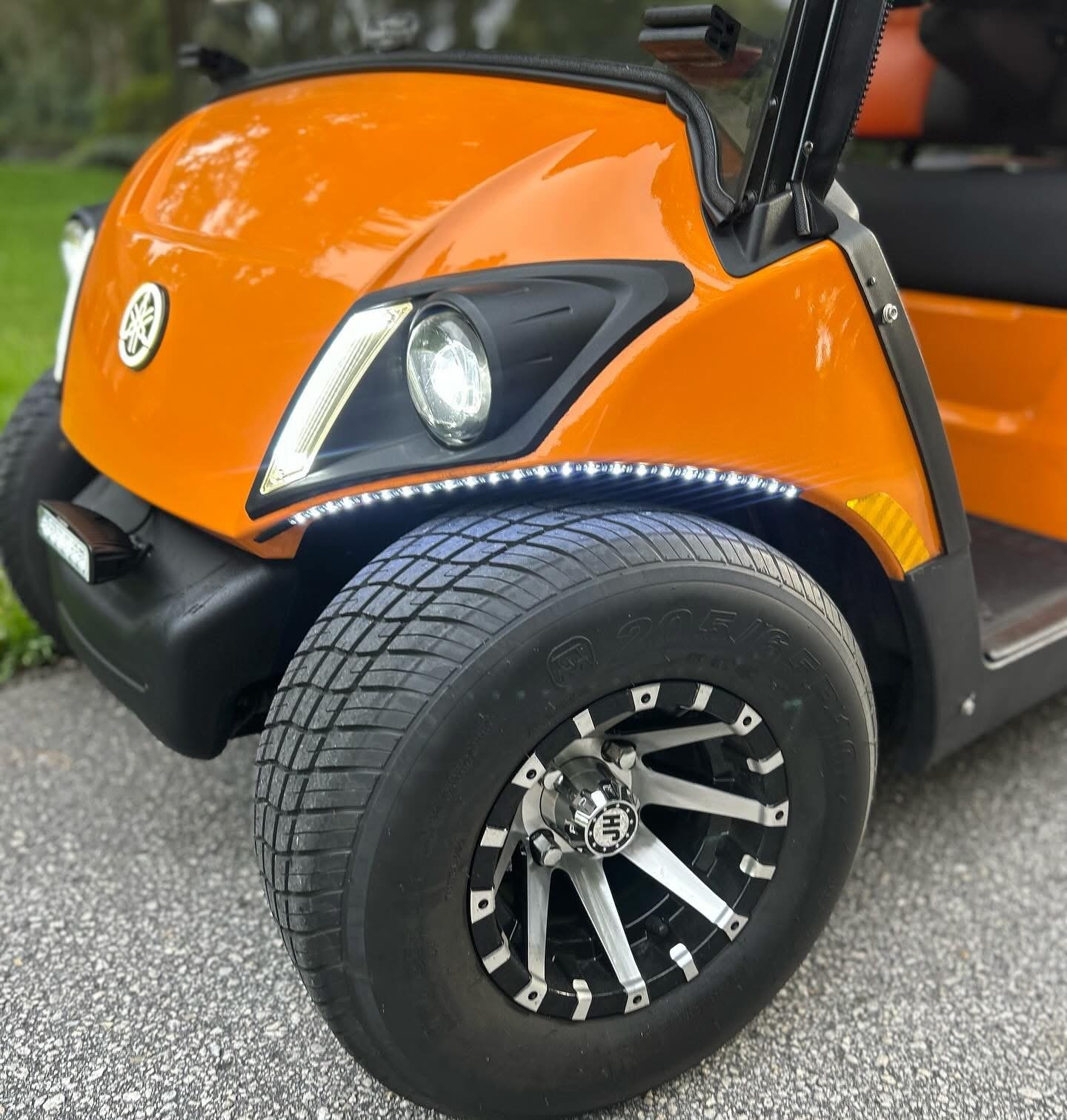 It is absolutely LOADED with full LED light kit, Yamaha illuminated logo, LED strips on front and all down the sides with SELF-CANCELLING turn signals. Has UPGRADED El Tigrè Elegantè seating with 3 arm rests and seatbelts in the front and the back, gas gauge/hour meter, speedometer, overhead tray, cooler, sand bottle, custom wheels, hard valence enclosure, painted roof with chasing 3rd brake light and more!