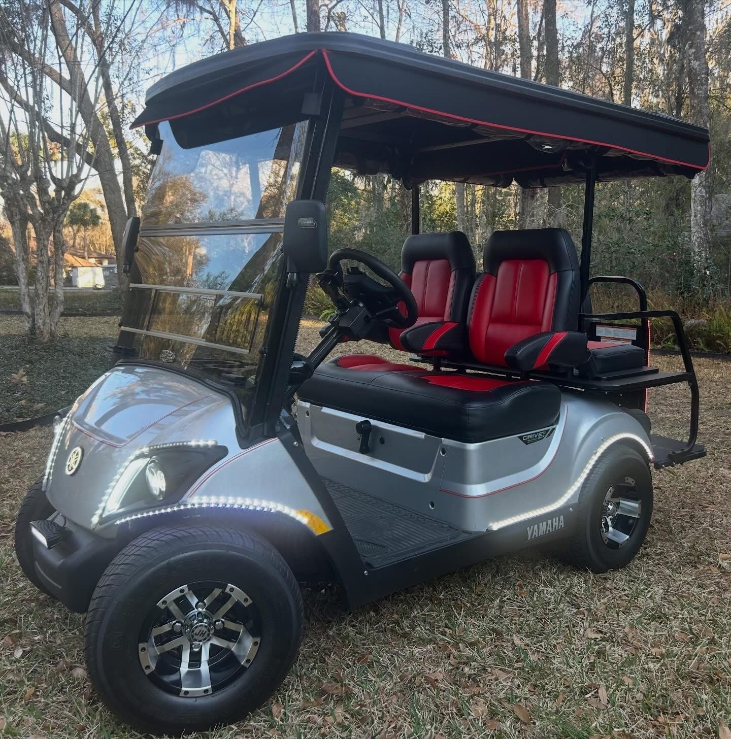 We have here nothing short of stunning, custom 2021 YAMAHA GAS QuieTech PTV⛽️ Factory 4 PASSENGER golf cart in LIKE NEW CONDITION! It was purchased new from The Villages Golf Cars and has VERY LOW HOURS (125) and mileage (1500); it’s ready to roll!