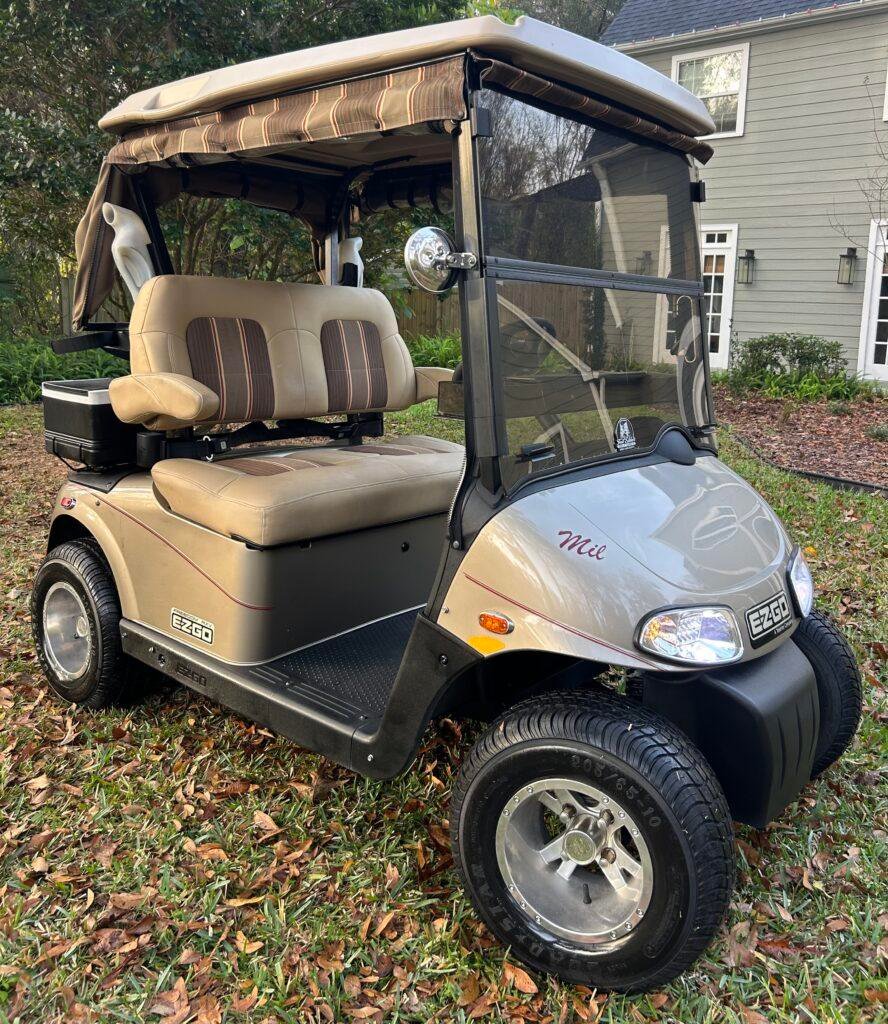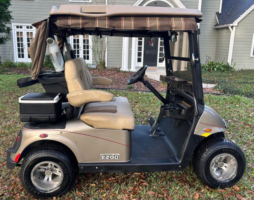 This cart is loaded with full LED light kit (LED headlights, tail lights, brake lights, turn signals, horn) all in working order. Also has side lights for added visibility & turn signal indicators in the cart. Has UPGRADED El TigrΓ© seats with arm rests and seatbelts, locking dashboard with battery meter, sun visors and overhead tray. Also has cooler, sand bottle, mirrors, full rain enclosure, tinted windshield and tires are in very good shape. Comes with charger.